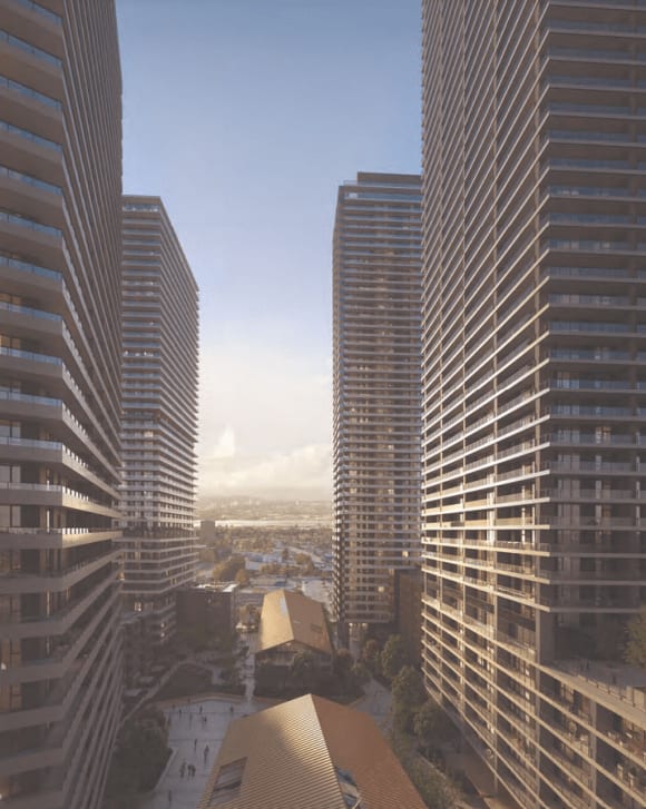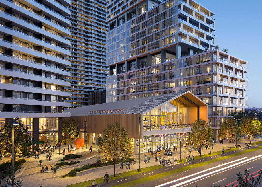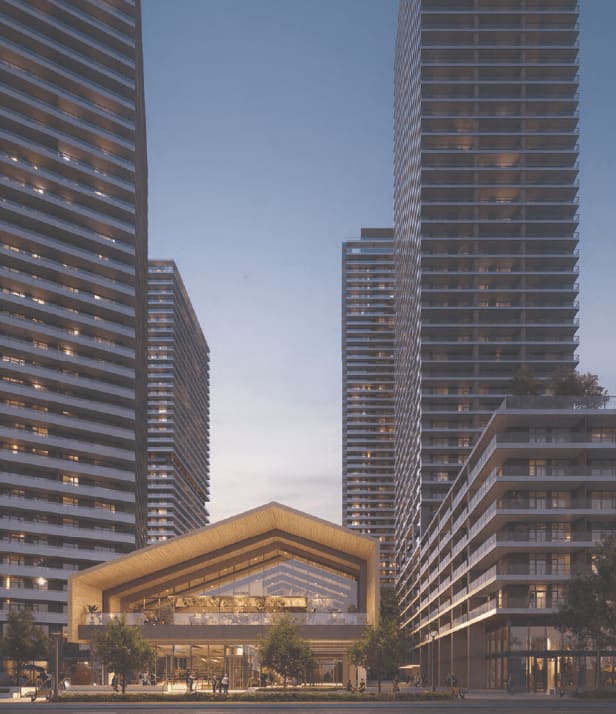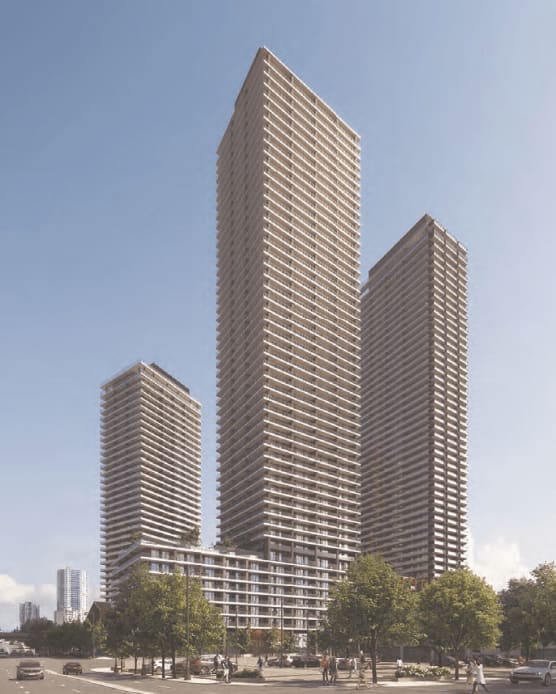 The multi-phase, mixed use development proposal “Parkway” (formerly “Brightside”) includes two high-rise, mixed-use towers and two high-rise residential towers (37, 46, 51 and 52-storeys) in addition to two low-rise buildings at an overall gross density of 7.9 FAR.