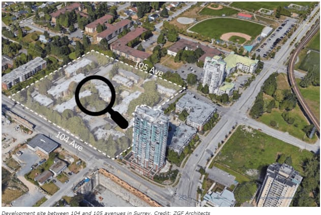 The property, located at 13301 to 13355 104th Avenue and 13280 to 13362 105th Avenue, is currently home to 156 rental apartments built in 1968, which are nearing the end of their economic life.