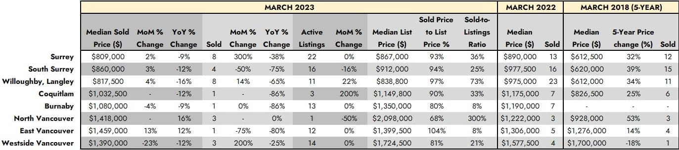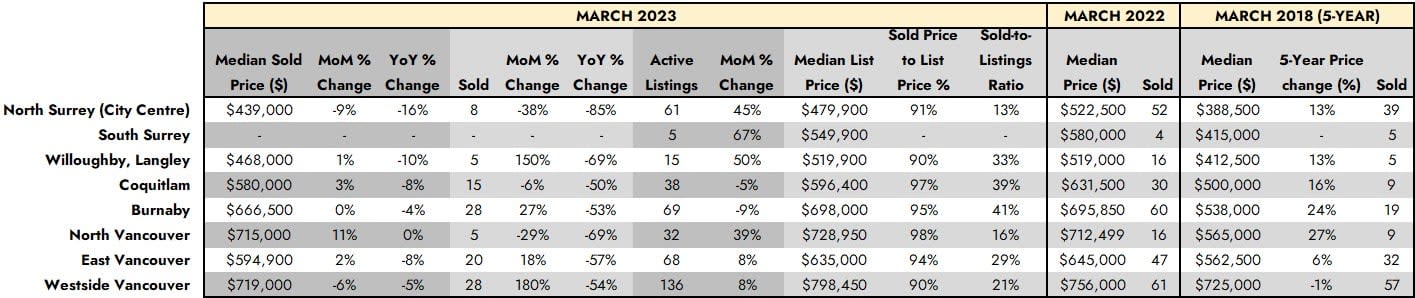 - Burnaby and North Vancouver have experienced the strongest five-year growth in prices, with median sold prices up by 24 & 27 percent respectively since 2018.