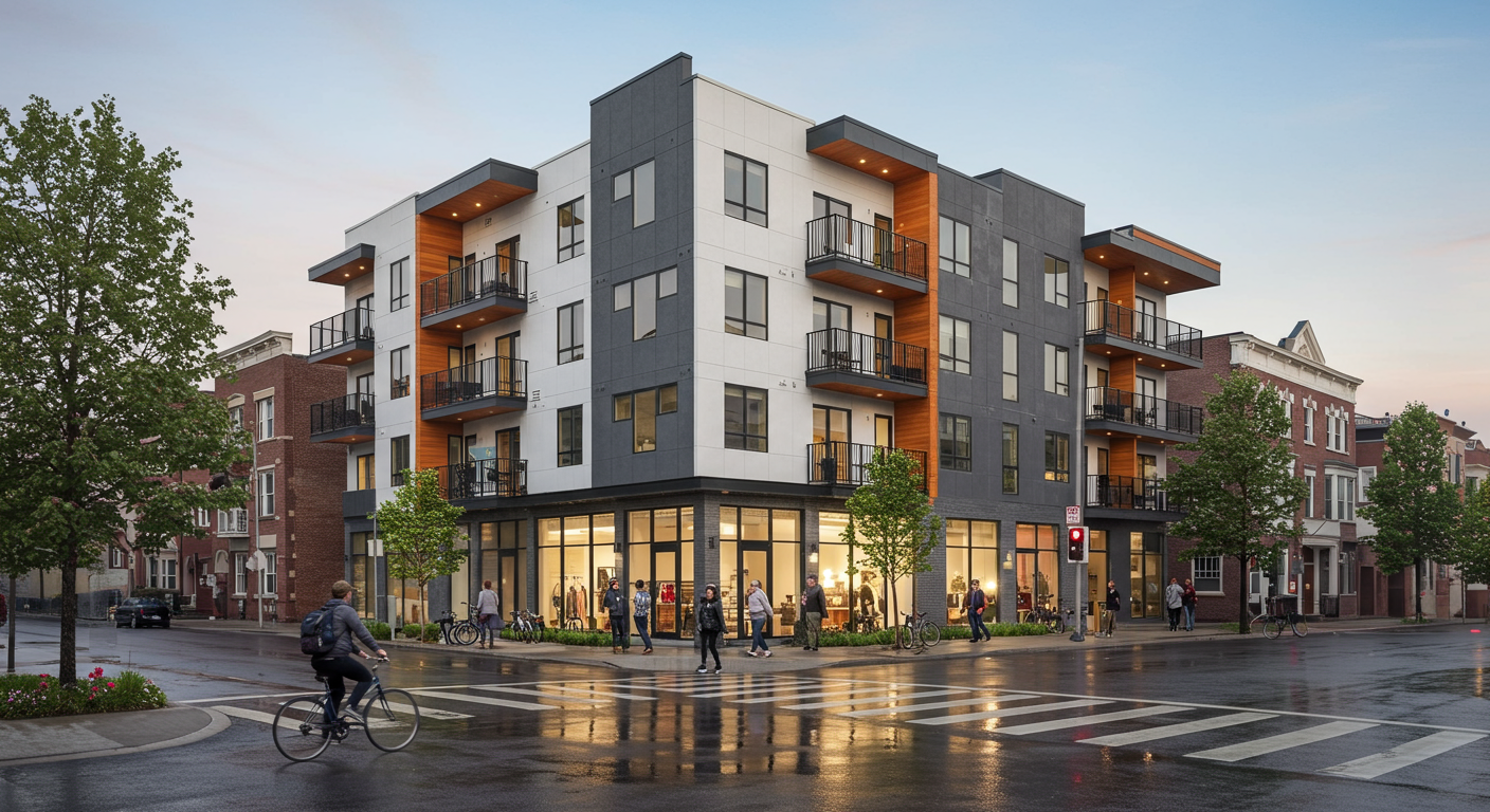 Fronting the arterial 24th Avenue, the north building will also feature a 12,064 SF of commercial retail space.
